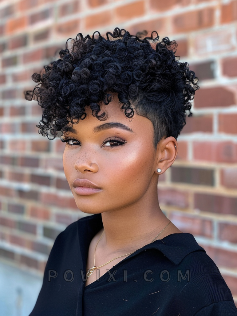 The curly asymmetrical pixie is a fantastic option for those with curly hair who want to embrace their natural texture while rocking a trendy cut. This style features a longer length on one side, allowing the curls to cascade beautifully, while the shorter side adds a modern edge. It’s an excellent choice for women with round faces or square faces, as it adds a touch of softness and femininity.