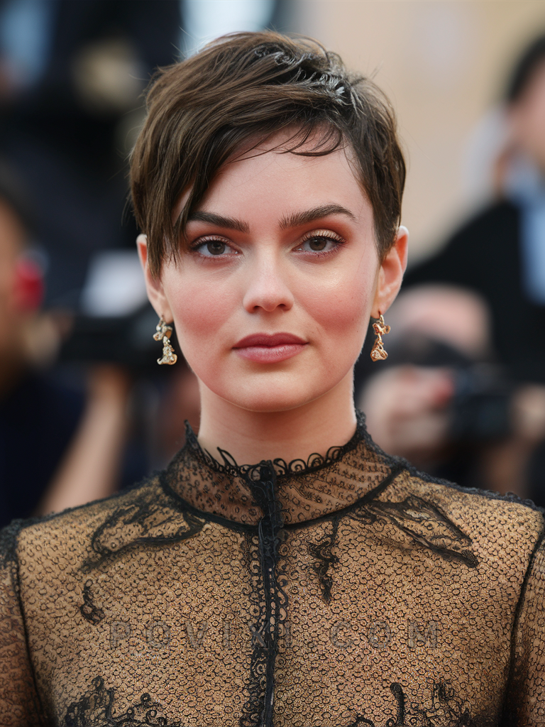 The asymmetrical pixie with a tousled finish is perfect for those who prefer a more relaxed and casual look.