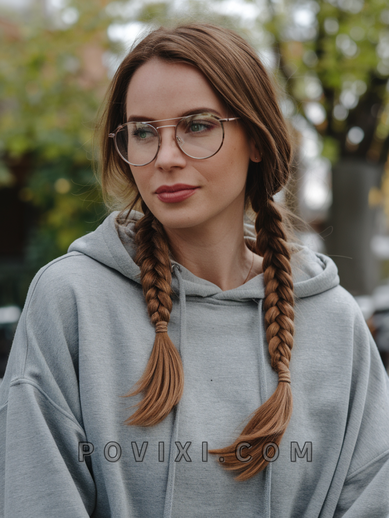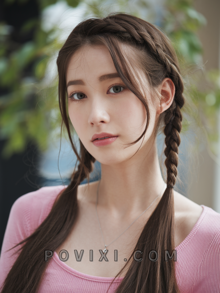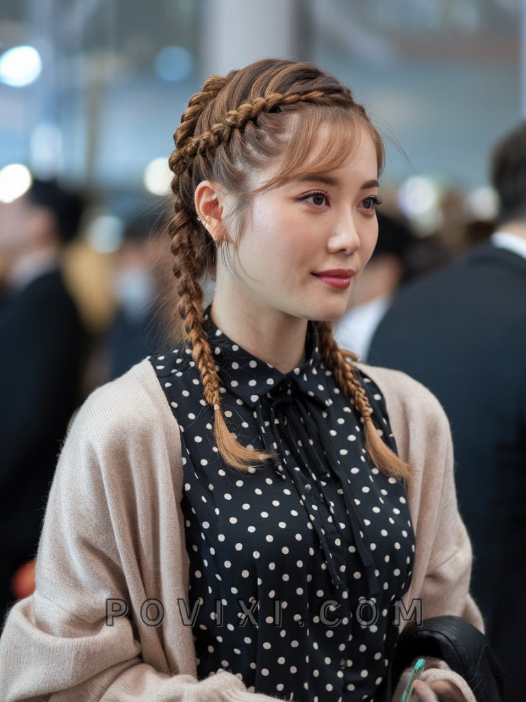 Inspired by K-pop trends, braided pigtails are a fun and youthful style. This look features two high braided ponytails that are playful and perfect for music festivals or themed parties. It’s great for teens and suits round and heart-shaped faces, adding height and structure.
