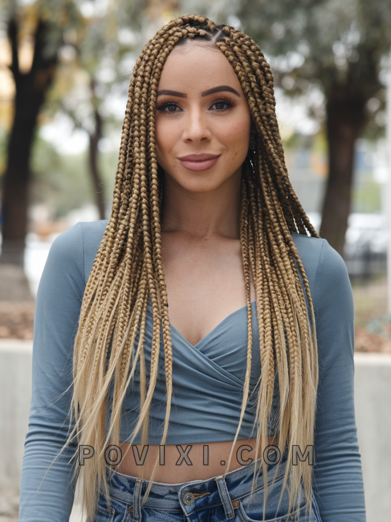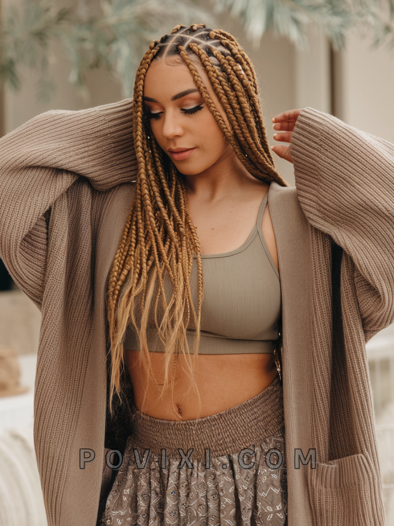 Box braids offer a stylish and easy option for those looking for a long-lasting, pretty hairstyle. With each braid standing alone, this look is highly customizable. Box braids can vary in length and thickness, making them adaptable for different personal styles. They frame square and oval faces nicely, and their flexibility makes them great for both casual and semi-formal occasions.