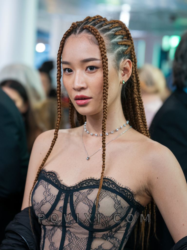 Boho braids with beads bring a playful, Korean-inspired touch, blending loose, relaxed braids with bead accents. This look is perfect for festivals or a casual day out. The braids look amazing on heart and oval faces, especially when paired with wavy hair for added texture.