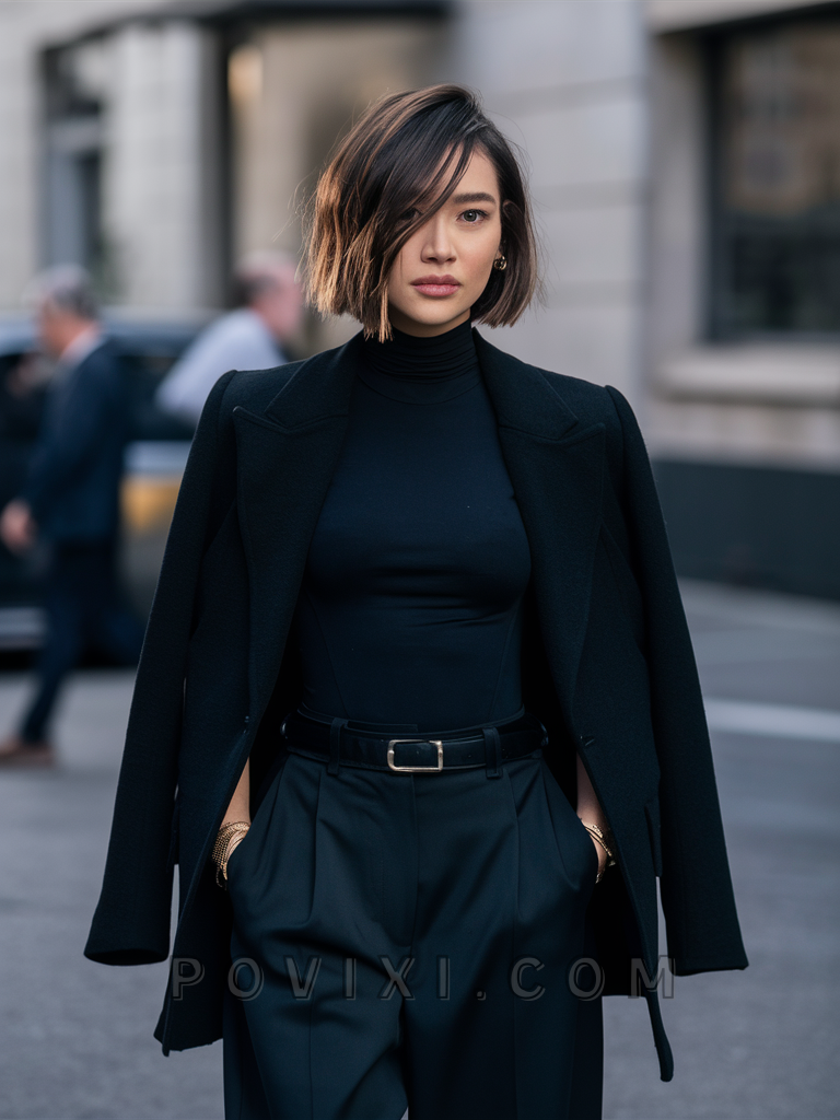 To create this look, your stylist will cut one side shorter than the other, adding choppy layers for texture. Use a straightening iron to keep the longer side sleek, and a texturizing spray to enhance the choppy layers. Maintenance involves regular trims to keep the asymmetry sharp and defined.