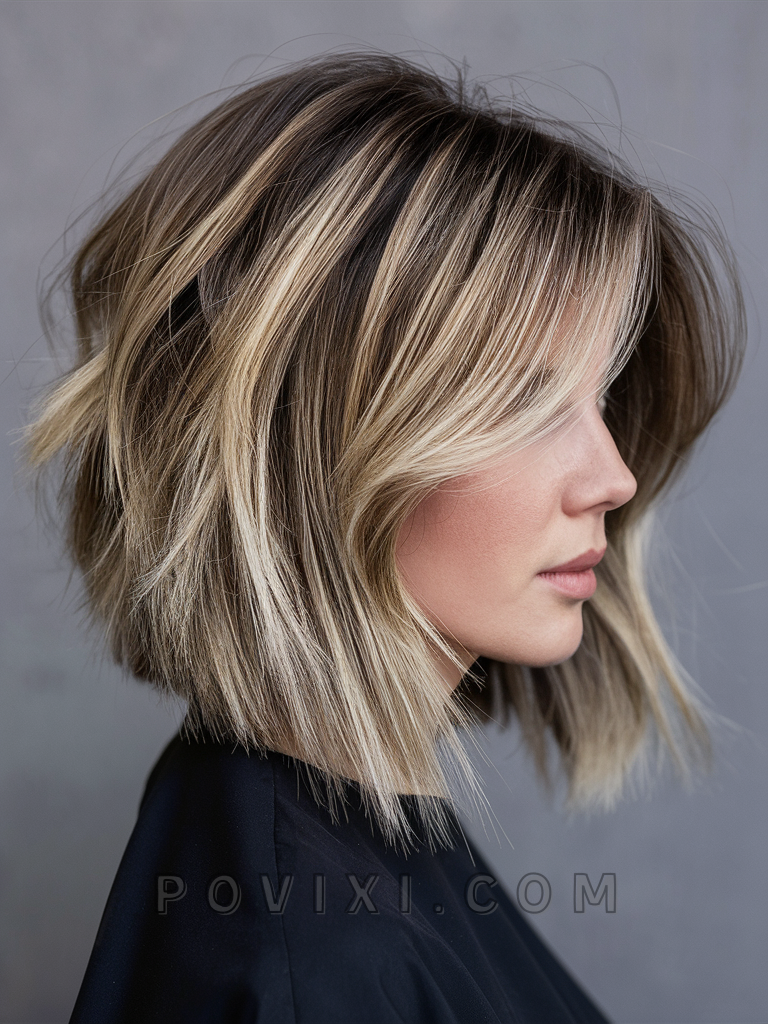 To achieve this look, your stylist will use a razor to create textured layers and add highlights using balayage or foiling techniques. Use a color-protecting shampoo like Joico Color Balance Purple to keep the highlights vibrant. Regular trims and conditioning treatments will help maintain the health and style of your bob.