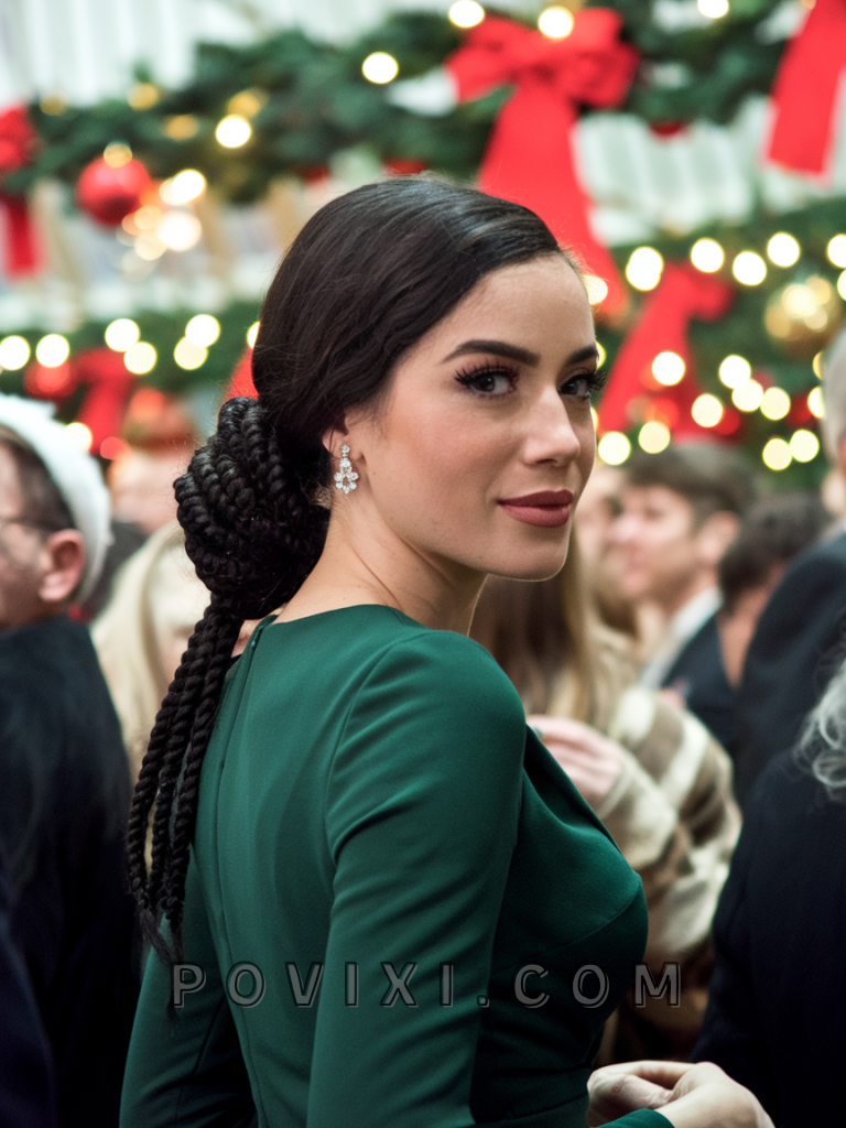 A sleek low bun with twisted details is an elegant choice for formal Christmas parties. This hairstyle exudes sophistication while keeping things modern and festive. Ideal for medium length or long hair, the low bun is best suited for individuals with oval or heart-shaped faces. It’s perfect for pairing with statement earrings and a bold red lip, making it a great style for both office parties and glamorous evening events. The clean finish of the twisted strands adds an extra element of chic, making it a festive favorite for 2024.