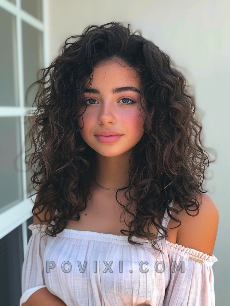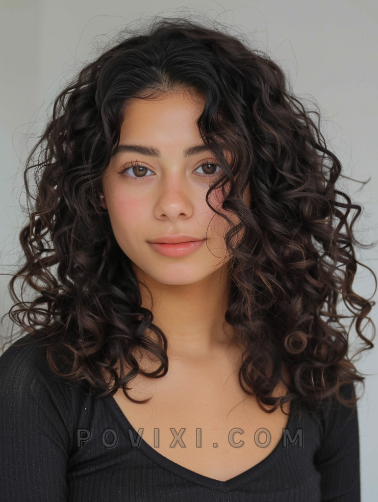 Adding a deep side part to voluminous curls can transform your whole look, giving it an air of glamour and sophistication. This style works best with long, layered curls, offering a dramatic lift and ample body. It’s an ideal hairstyle for evening events or any occasion where you want to make a statement.
