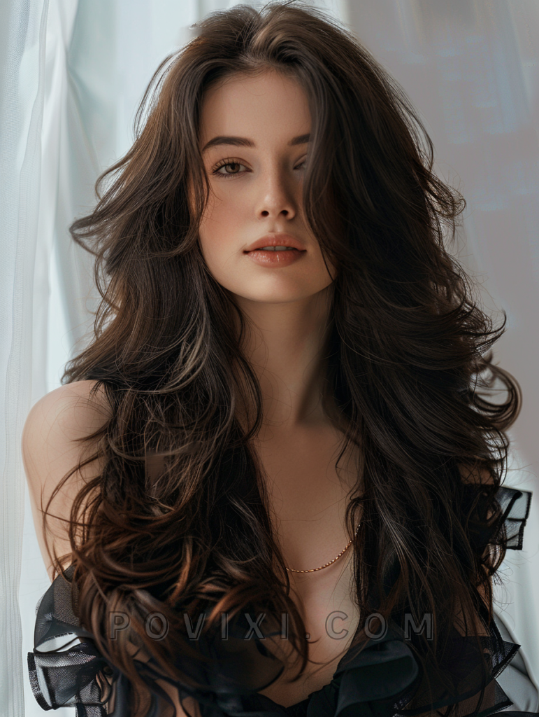 Brown hair with soft layers offers a subtle, natural look that enhances the depth and richness of medium to long curls. This style is incredibly versatile, suitable for both formal and informal settings. It pairs beautifully with warm skin tones and brings a soft, romantic flair to your overall appearance.
