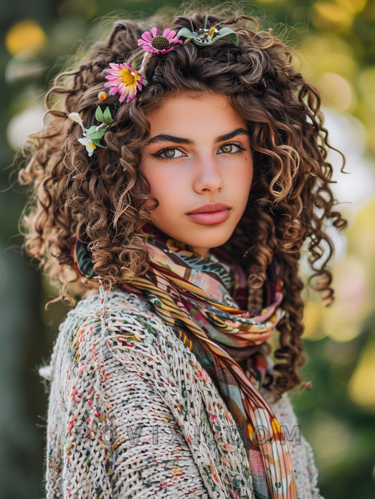 Curls with an aesthetic appeal often involve creative styling and the use of accessories to create a unique, artistic look. This can include the use of scarves, clips, or flowers interwoven into the curls, ideal for festivals, creative gatherings, or anytime you want to showcase your individual style.