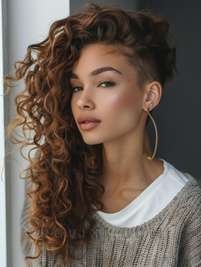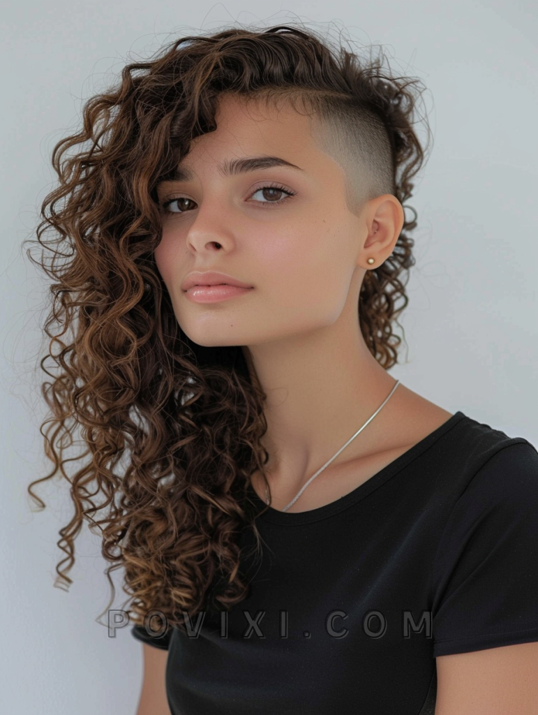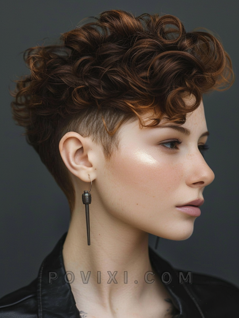 This style works well for women who prefer a low-maintenance yet stylish look. The undercut showcases a clean, sharp line around the sides while the curls on top offer a soft, natural texture.