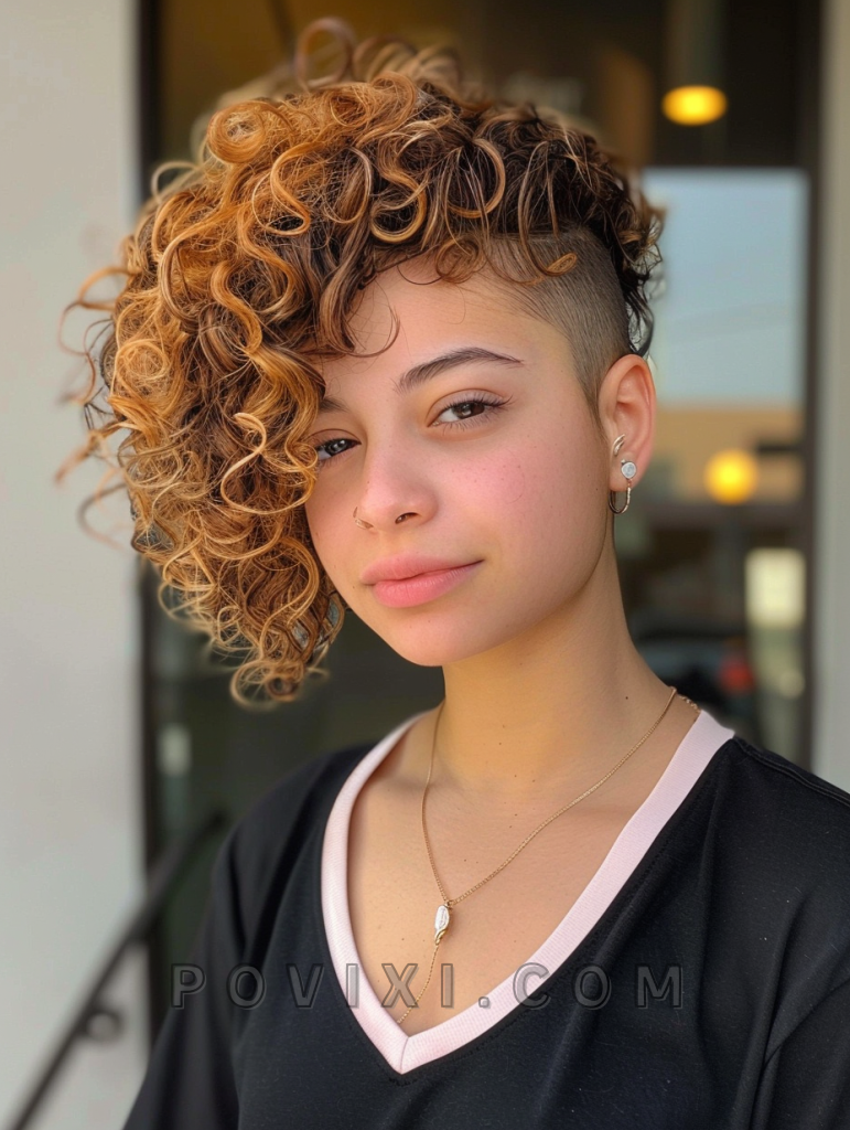Spiral curls paired with a sharp fade offer a striking and modern contrast that’s becoming increasingly popular among women with curly hair. This style highlights the dense, spiraled textures on top while keeping the sides clean and low-maintenance. It’s an excellent choice for professional environments as well as casual settings.