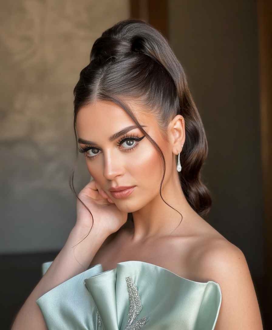A stronghold gel or elastic cream can help keep the ponytail sleek and the bangs in place, offering a neat yet vibrant look.