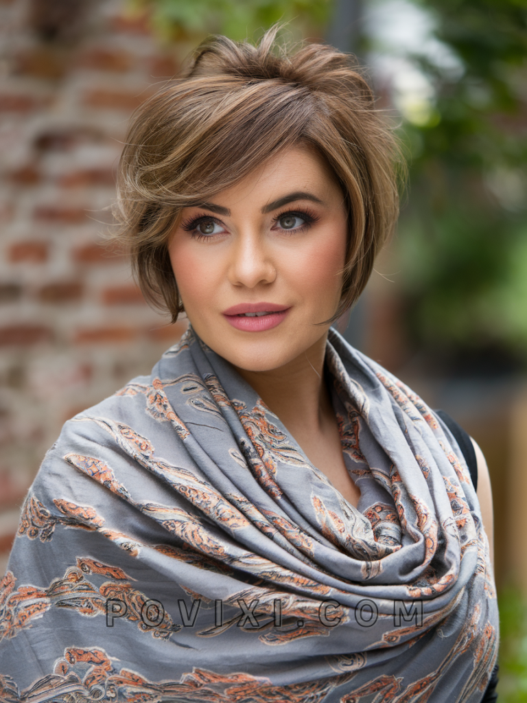 For women with short thick hair, a voluminous pixie cut is the perfect solution to add height and dimension to a round face. The short cut with extra volume on top elongates the face, creating a bold and edgy look. This style is ideal for anyone who wants a low-maintenance, high-impact haircut, perfect for both casual and formal events. It’s particularly flattering for women with dark hair and strong facial features.