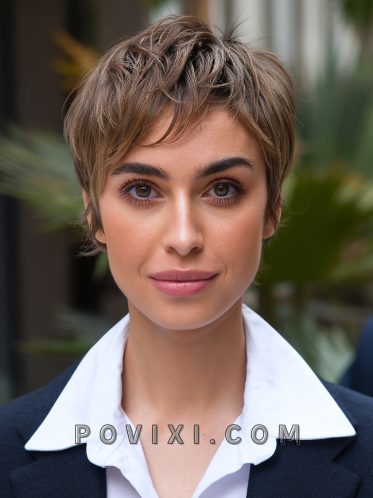 The chin-length pixie cut with side-swept bangs is perfect for those looking for a chic, modern look. The bangs add volume to the front while the shorter length in the back helps maintain the overall shape. This look is ideal for formal events, like weddings or gala dinners, where you need a refined yet bold hairstyle. The side-swept bangs are especially flattering for round face shapes, as they create the illusion of more angular features.
