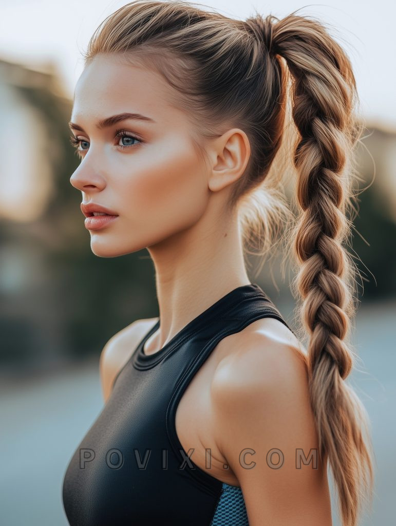 Side-swept braids offer a romantic and practical hairstyle for working out, combining the elegance of braids with the ease of a side-swept style. This hairstyle is perfect for long hair or medium-length hair and works well for moderate-intensity workouts like barre or Pilates. The side placement of the braids adds a playful touch, making this style cute and comfortable. It suits heart-shaped or square face shapes and adds a feminine flair to any workout outfit.