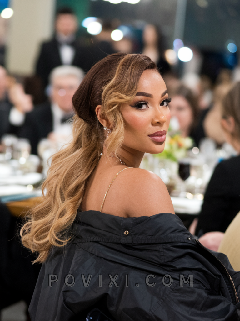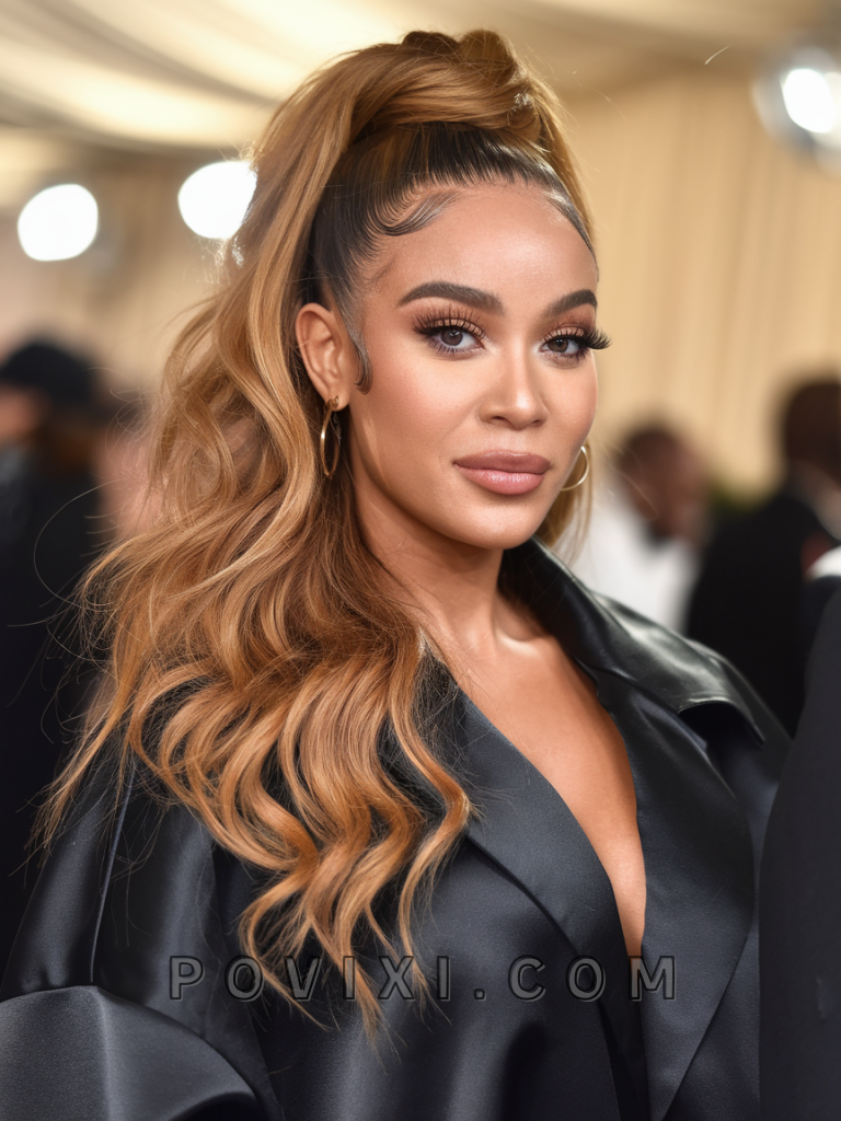 A high ponytail in honey blonde exudes confidence and sophistication. This style is perfect for a night out, gym sessions, or casual events. The sleekness of the ponytail pairs beautifully with sharp jawlines and oval face shapes, while the blonde tone adds brightness and flair.