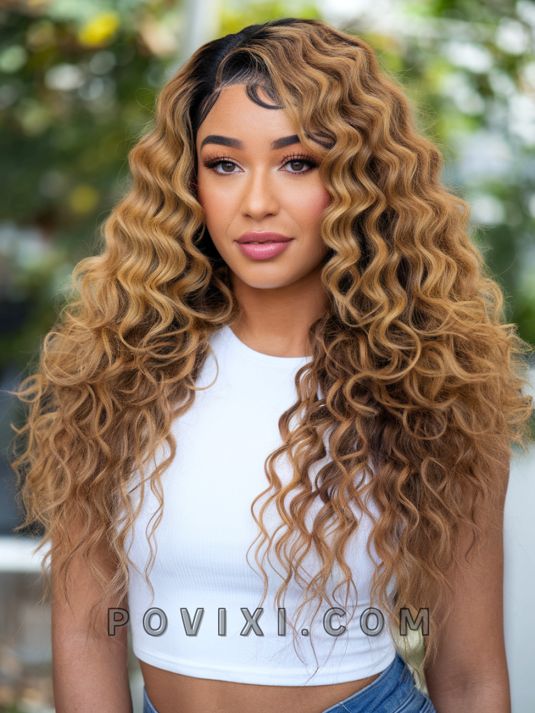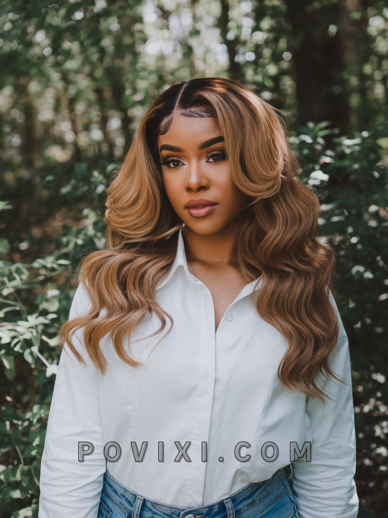 A water wave wig in honey blonde is a stunning choice for versatility and convenience. This wavy style is ideal for formal occasions, photo shoots, or nights out. The waves add a natural bounce that complements oval and heart-shaped faces.