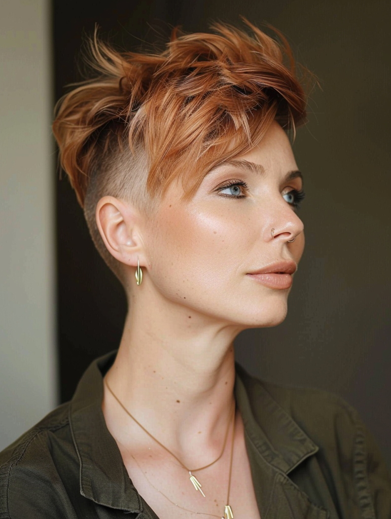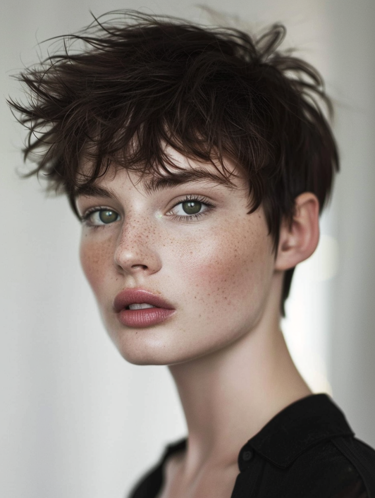 The modern pixie cut has evolved with short shag layers, giving it a youthful, rebellious vibe that’s perfect for casual outings and creative workplaces. Ideal for those with oval or heart-shaped faces, this style emphasizes sharp cheekbones and can enhance green or blue eyes.