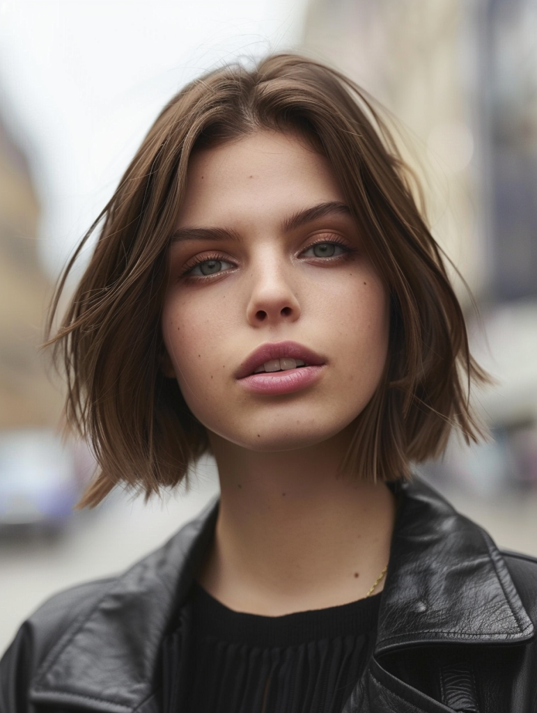 This super short bob is all about texture and movement, perfect for those who prefer a low-maintenance yet stylish look. It suits oval and long faces, highlighting the neck and collarbone. This style is particularly appealing for its easy-going nature and suitability for various occasions.