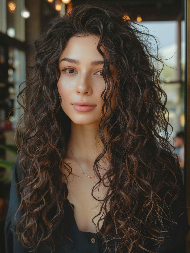For those with naturally curly hair, a long curly razor cut can remove bulk and define curls, making them spring up beautifully. This style works for all face shapes and is especially good for managing thicker, curlier textures.