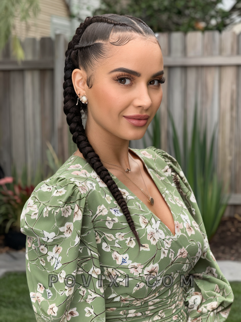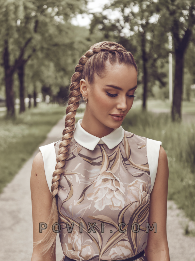 It’s suitable for various hair lengths and is flattering on square and oval face shapes. The Dutch braid adds texture, while the sleek sides create a structured look, perfect with natural makeup and light accessories.