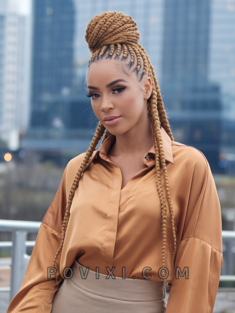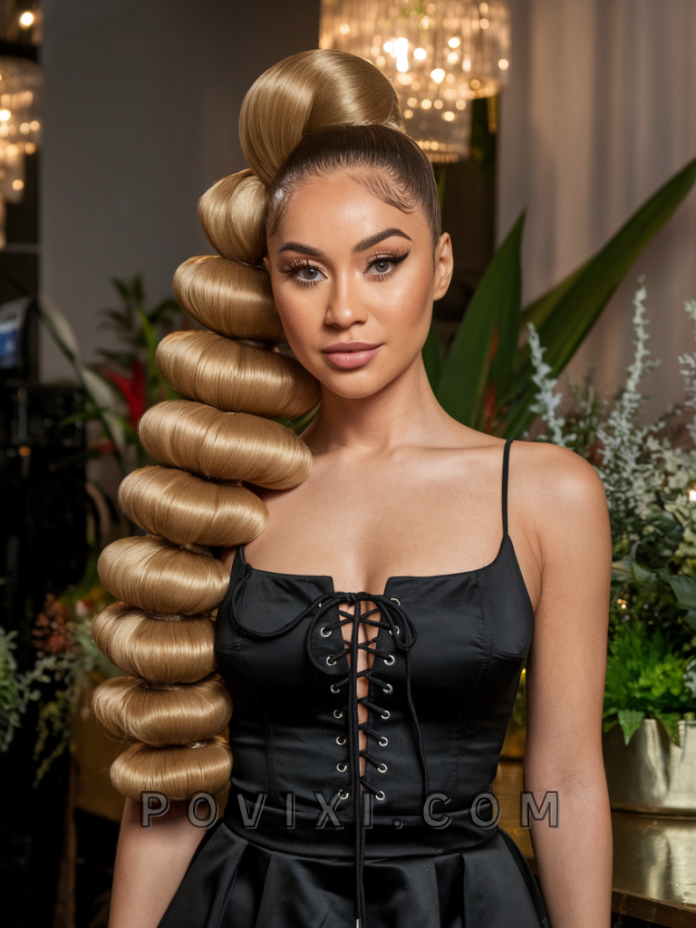 To achieve this look, gather the hair into a high ponytail and twist it into a bun, securing with pins. Use an edge control product to style the edges into smooth, defined shapes. For long-lasting sleekness, apply a holding spray, and touch up edges throughout the day with a small edge brush.