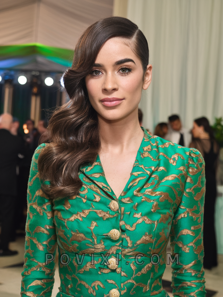 It’s ideal for oval and diamond face shapes, as it frames the face beautifully, while the half-up style adds height and dimension. This style is particularly stunning with soft makeup and a light highlighter on the cheekbones.