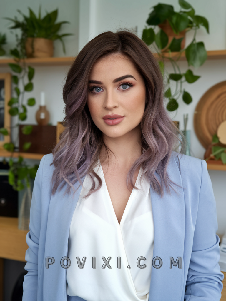 For a unique twist, try a soft purple tint over your natural brunette shade. This subtle color adds a cool edge, perfect for evening events or creative workplaces. It works best on those with pale skin and cool undertones, and it can make brown or hazel eyes pop.