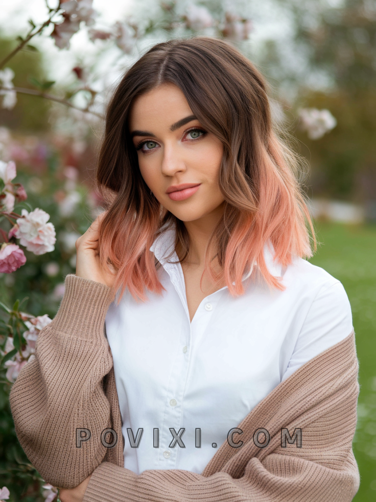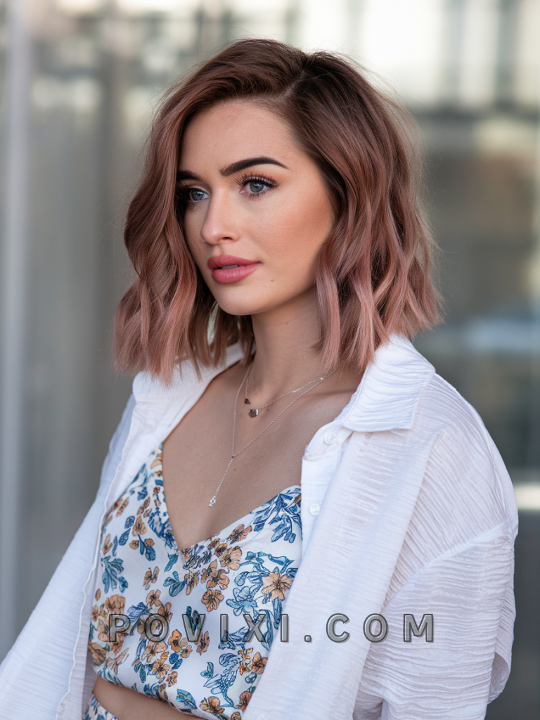For brunettes looking to add a touch of romance, a rose gold tint offers a trendy yet subtle choice. This color blends warm pink and gold tones, making it a unique option for spring festivals or photoshoots. Best for fair to medium skin tones, this look adds a playful edge to short hair or medium length styles.