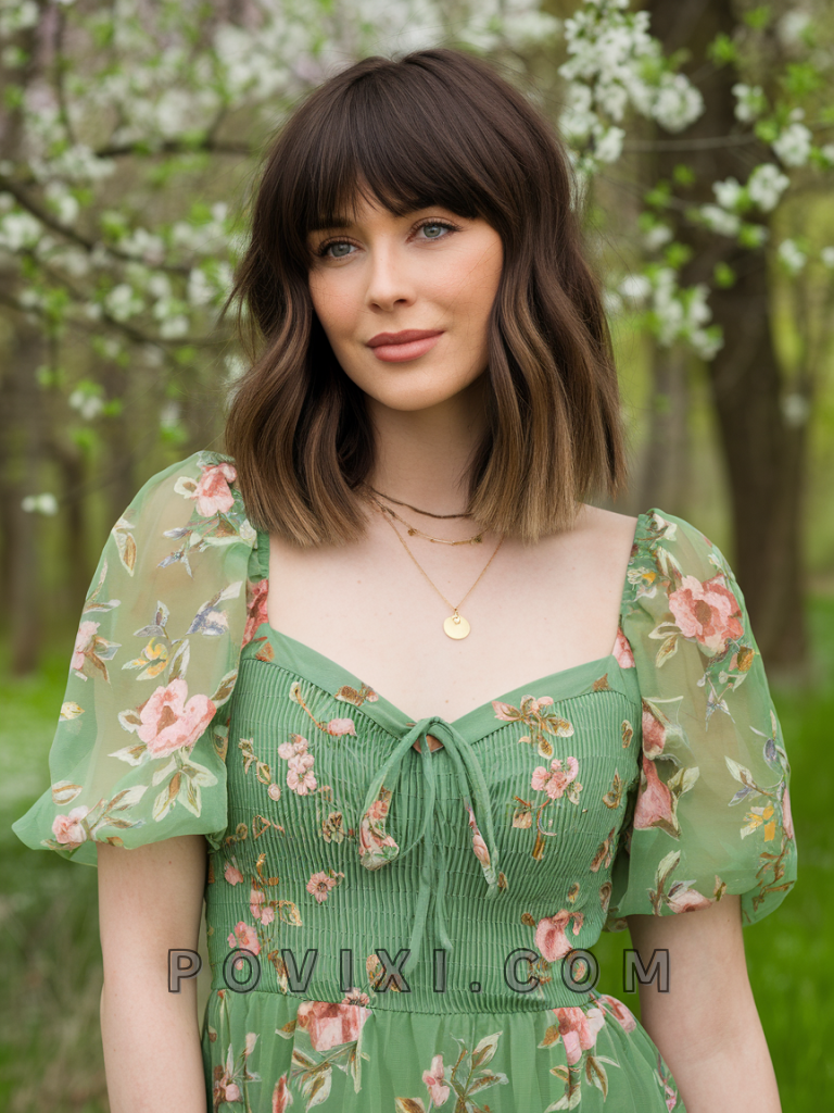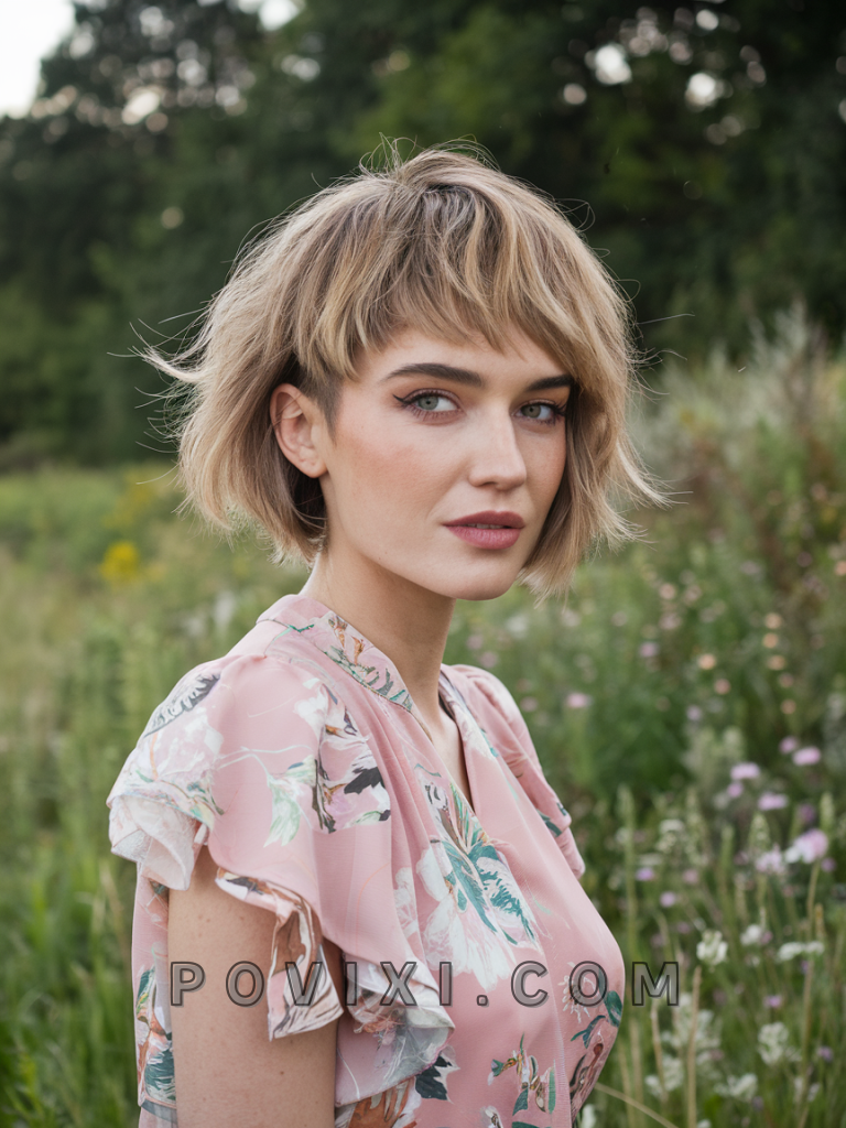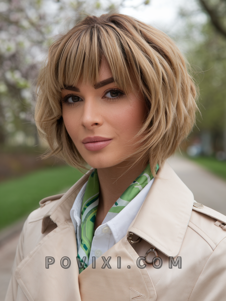 The shaggy bob with bangs is a playful and casual haircut that offers a relaxed vibe for the spring season. It features uneven layers and wispy bangs, making it suitable for women with heart-shaped or oval faces. This style is perfect for casual outings or creative professions, as it exudes individuality and charm.