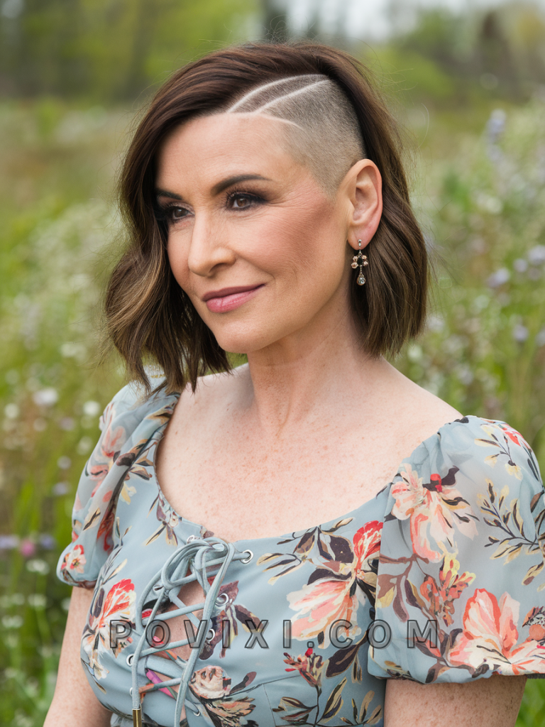 A chin-length cut with an undercut is a daring and edgy hairstyle for 2025. This short trendy cut works well for thick hair, as the undercut reduces bulk, and the length adds a soft, feminine touch. It’s especially flattering on women with round faces.