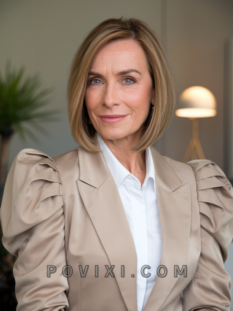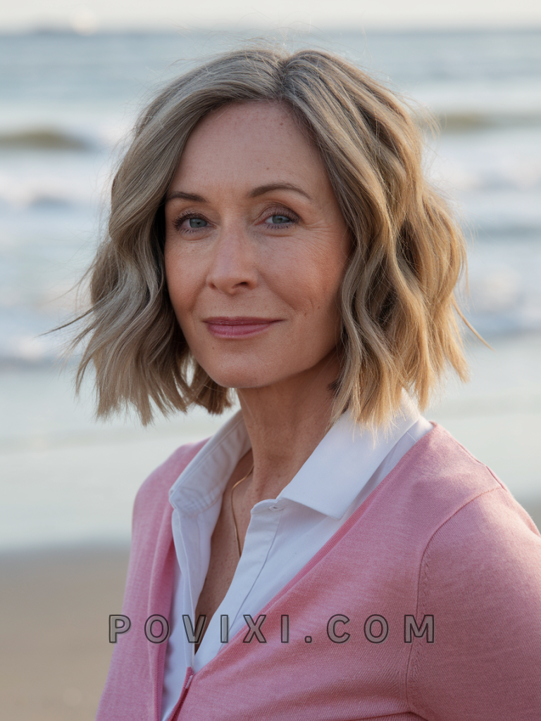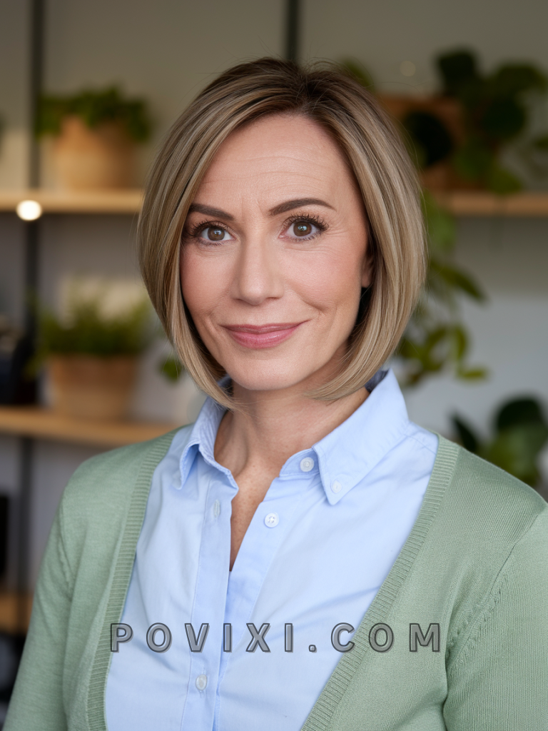 The modern bob is a timeless, stylish short hairstyle that’s perfect for women over 40. With its sharp edges and sleek finish, it works wonderfully for a round face or long face, as it frames the cheeks and jawline beautifully. Whether you go for chin length or shoulder length, this cut adds sophistication and is ideal for work or casual outings. Blonde tones can add depth and dimension, while highlights enhance its modern appeal.