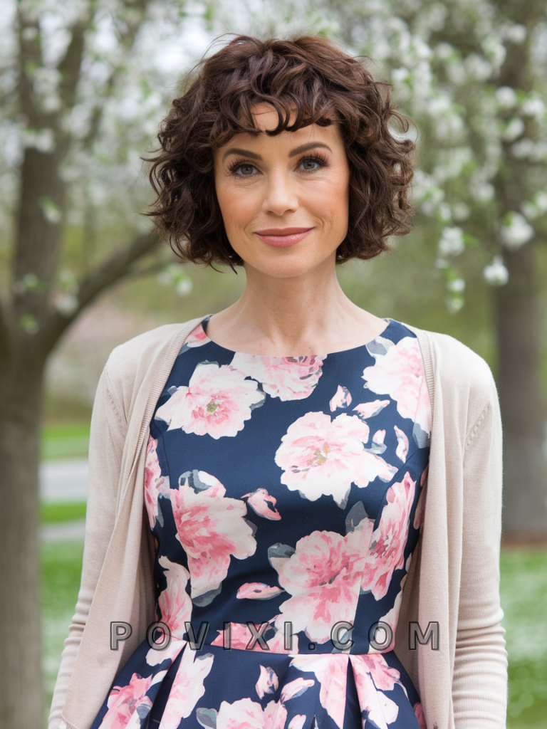 For women embracing their natural curls, the curly chin length bob is a stunning choice. It’s perfect for those with thick hair or defined curls, and it suits both round and long face shapes. This cut enhances the natural texture, making it ideal for casual outings or spring celebrations.