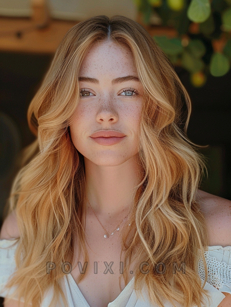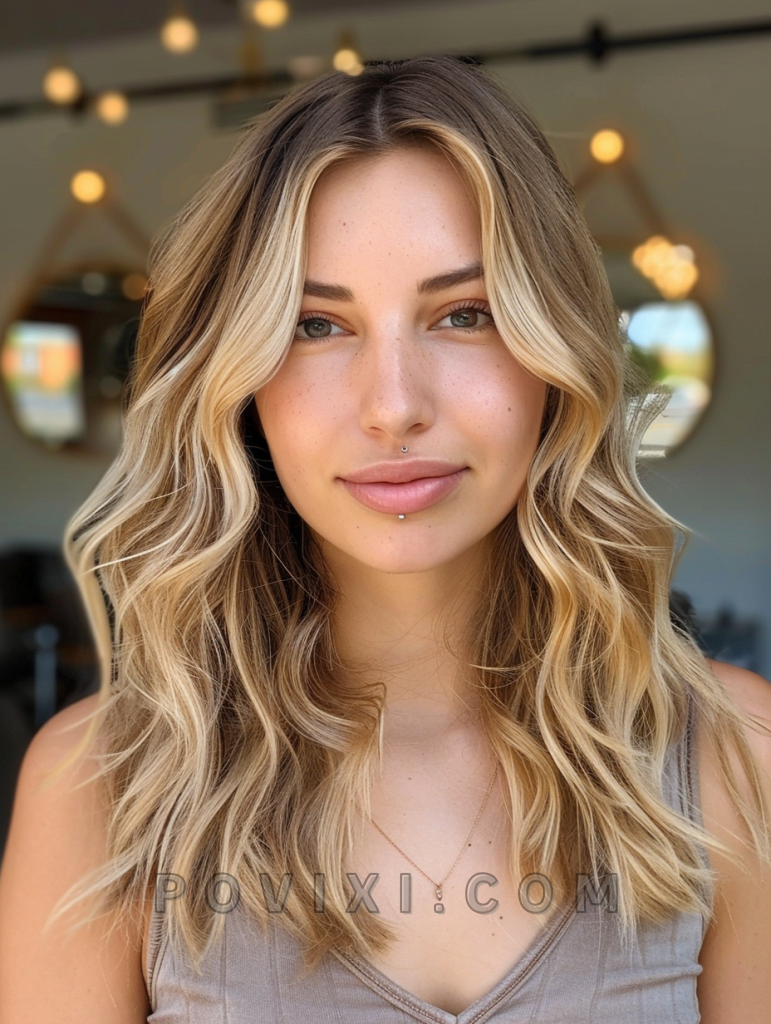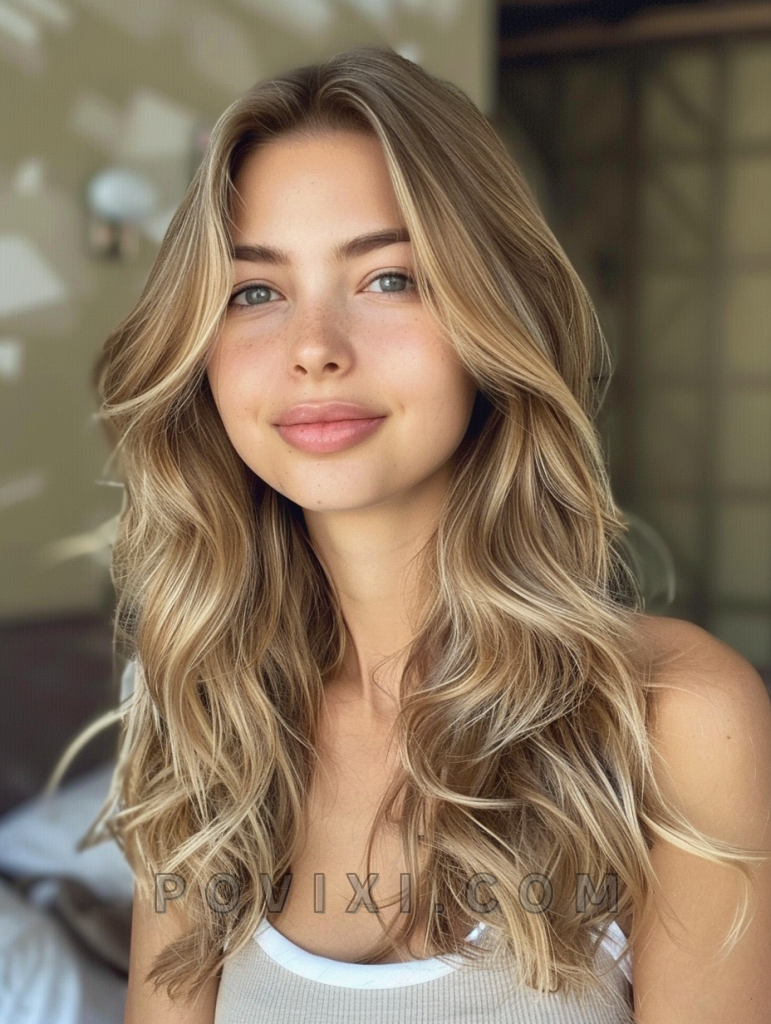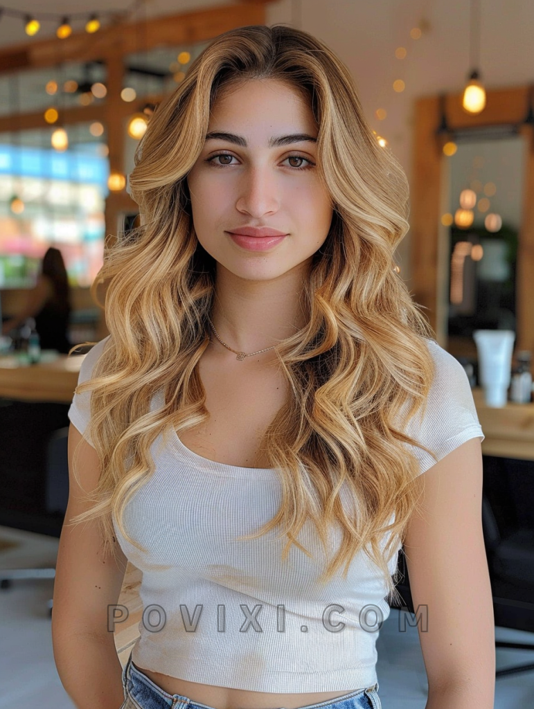 Embrace the honey summer look with soft waves that mimic the gentle flow of the ocean. This balayage style is perfect for long, flowing hairstyles and adds a romantic, bohemian flair that’s hard to miss. It’s a fantastic choice for someone with a warm skin tone and any eye color.
