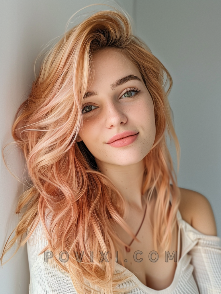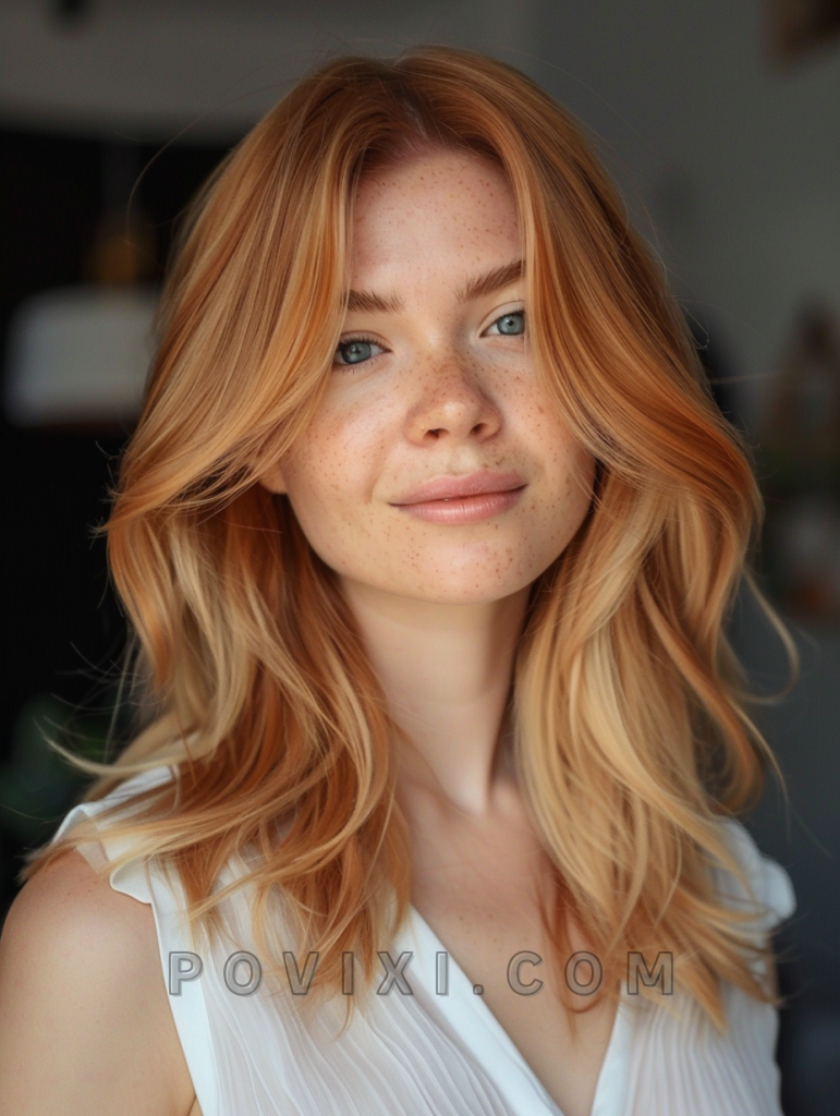 Stylists achieve this look by adding soft strawberry blonde highlights, creating a gentle yet impactful transformation. Preserve the color with sulfate-free products and regular conditioning treatments.