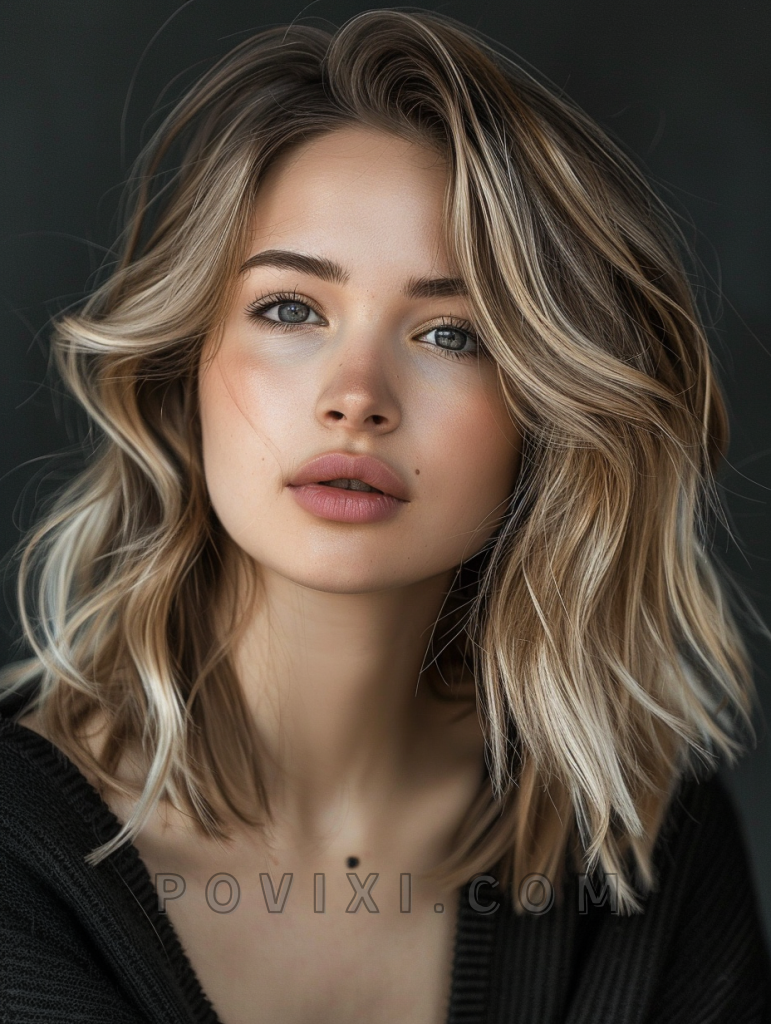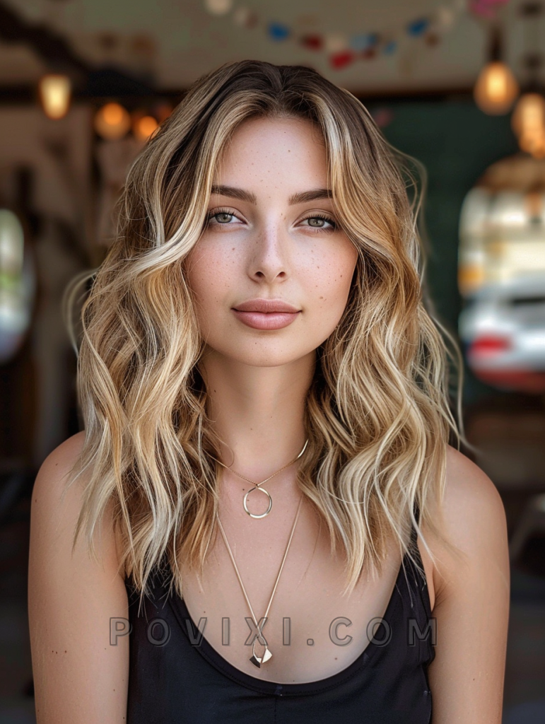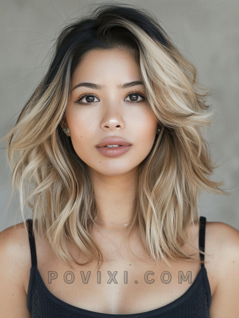 Medium lengths are incredibly versatile, and adding a blonde balayage can give this style a fresh and exciting twist. It’s perfect for anyone who enjoys a balance between not too long and not too short, providing a canvas for both casual and formal styles.