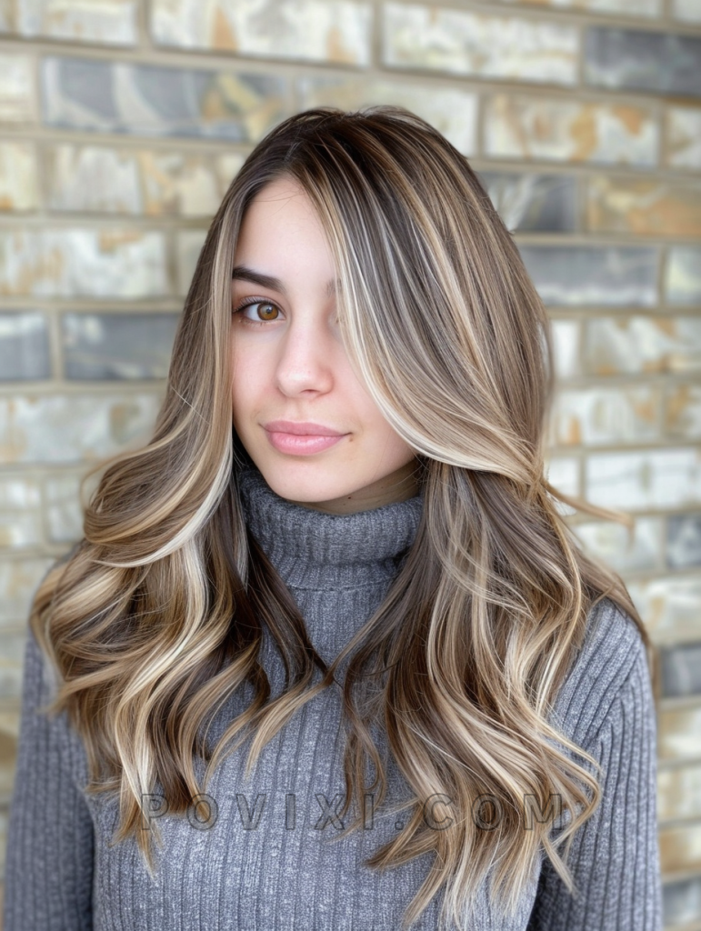 Icy blonde streaks are perfect for those who prefer a bold, statement-making look. This style uses high-contrast light blonde tones to stand out against darker hair, ideal for cooler skin tones and those with light blue or green eyes.
