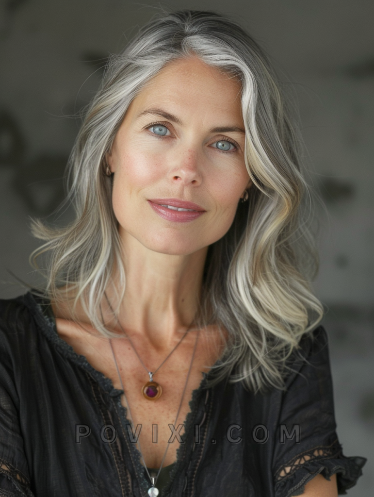 For those embracing their natural gray, blending it with subtle blonde streaks can create a sophisticated, aging-gracefully style. This look is best for medium to long hair and suits all skin tones, providing a dignified and elegant appearance.