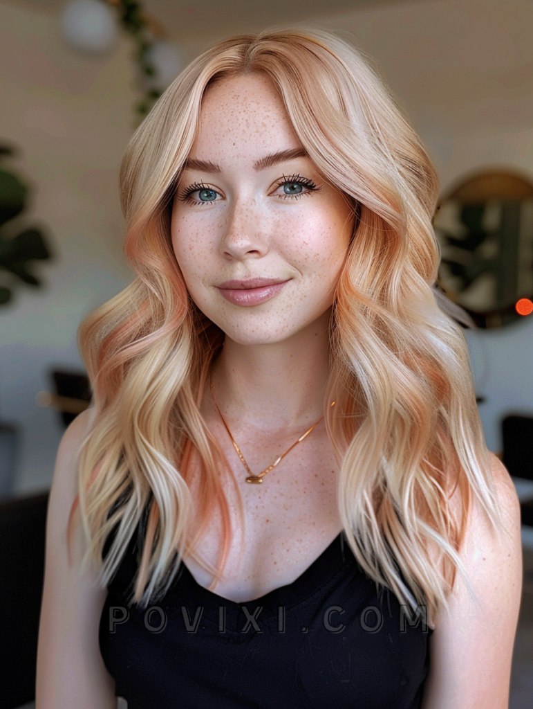 For those looking to add a subtle hint of red, light strawberry blonde balayage is a beautiful choice. This style works well for lighter bases and is perfect for adding a fresh, youthful vibe to your appearance. It’s particularly flattering for fair skin and light-colored eyes, such as blue or green.