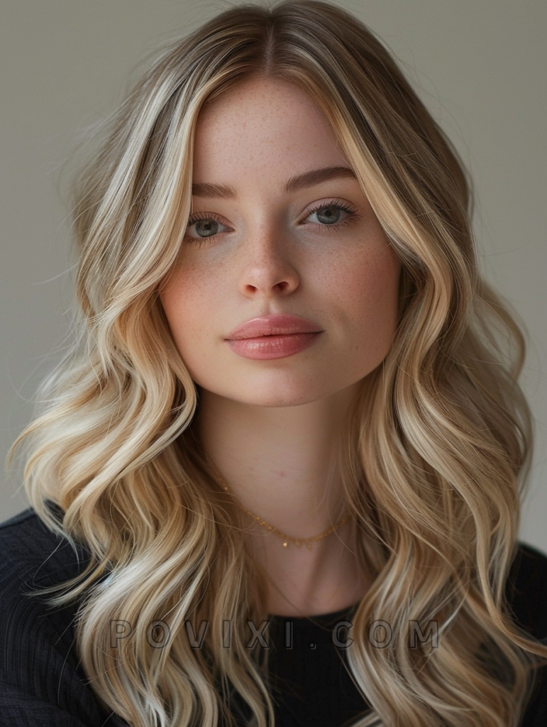 Soft beige highlights offer a subtle, natural enhancement to your blonde balayage. This color is excellent for all seasons and works particularly well with light to medium skin tones and hazel or green eyes.