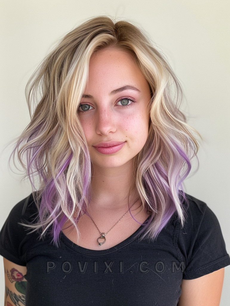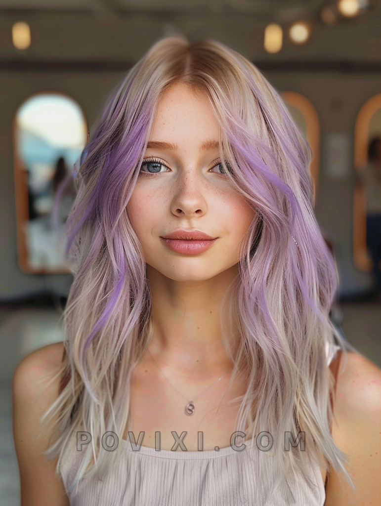 Add a whisper of lavender to blonde hair for an ethereal and contemporary edge. This unconventional choice is perfect for those who love to experiment with their look and stand out from the crowd.