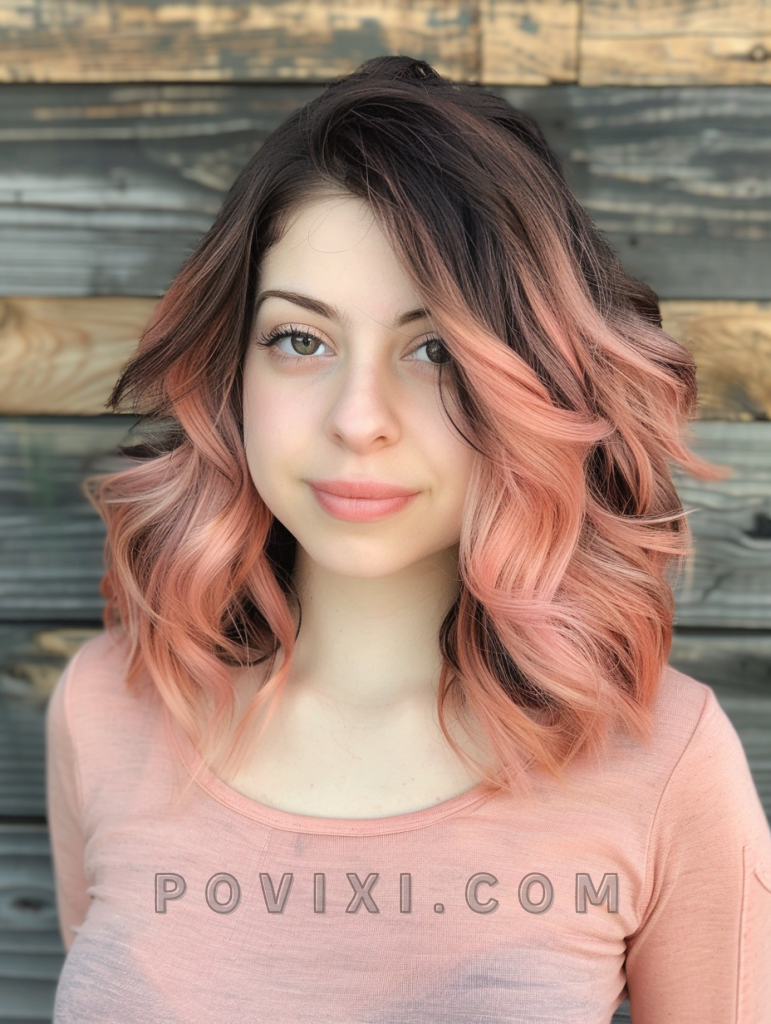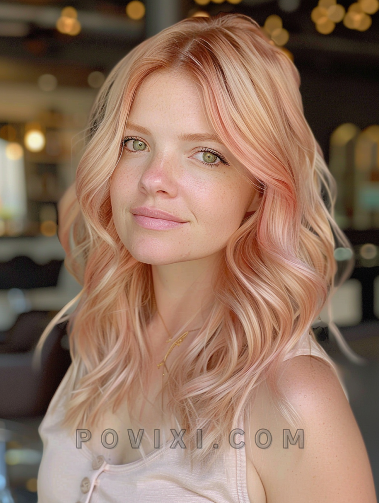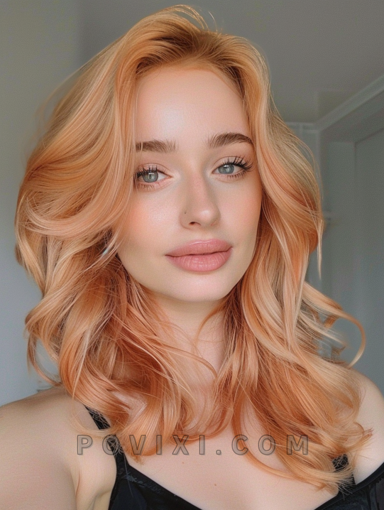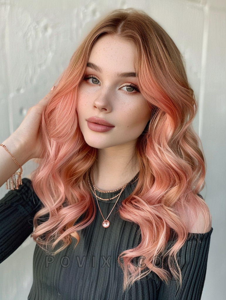 Blending peach and rose gold creates a warm, sun-kissed look that is perfect for spring and summer. This color works especially well on blondes, adding a fresh and youthful vibe to any hairstyle. It’s an excellent choice for casual gatherings and beach days.