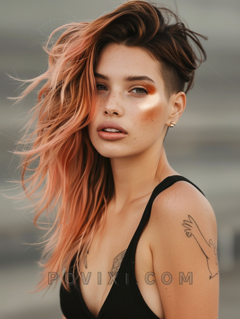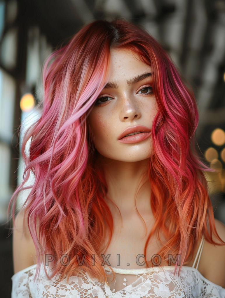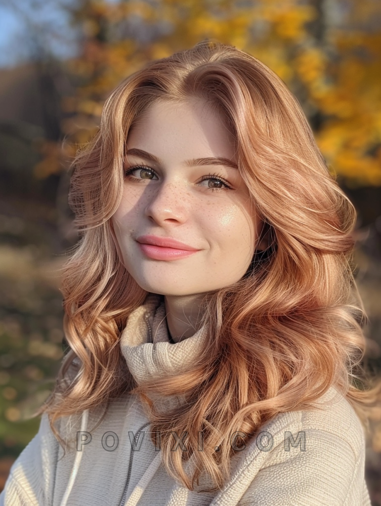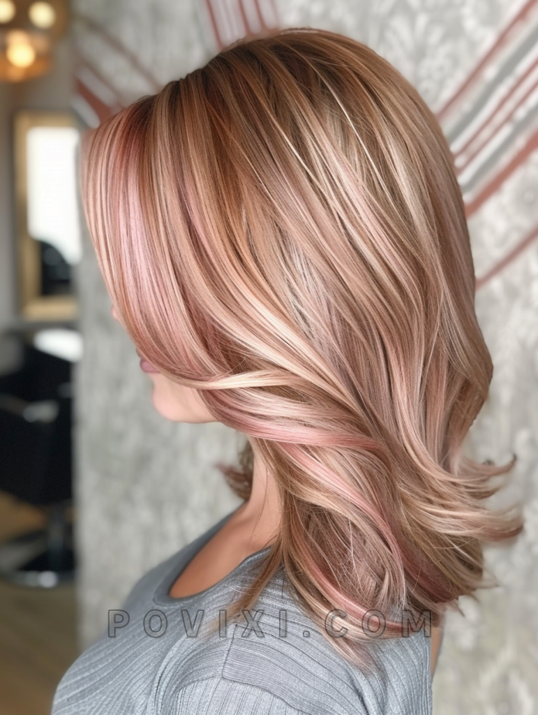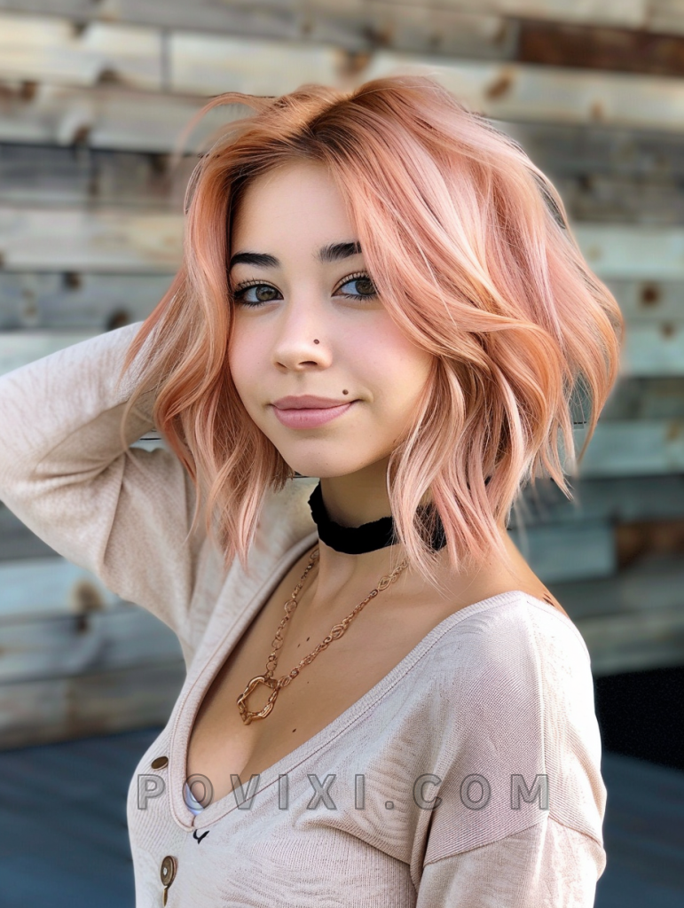 Blending peach and rose gold creates a warm, sun-kissed look that is perfect for spring and summer. This color works especially well on blondes, adding a fresh and youthful vibe to any hairstyle. It’s an excellent choice for casual gatherings and beach days.
