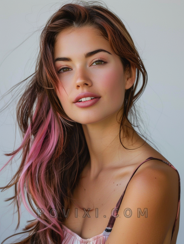 Adding thin streaks or ‘feathers’ of rose gold throughout brunette hair can create an illusion of depth and texture. This subtle yet effective method is perfect for those who prefer a more understated look or for professional environments where dramatic changes might be less appropriate.