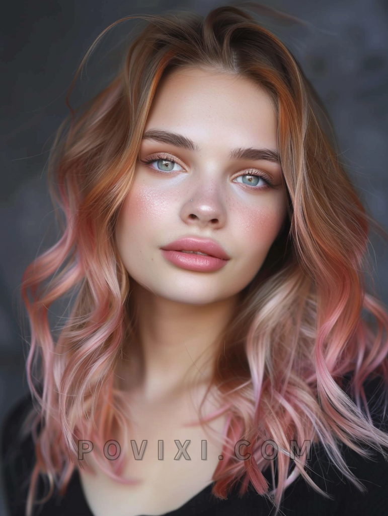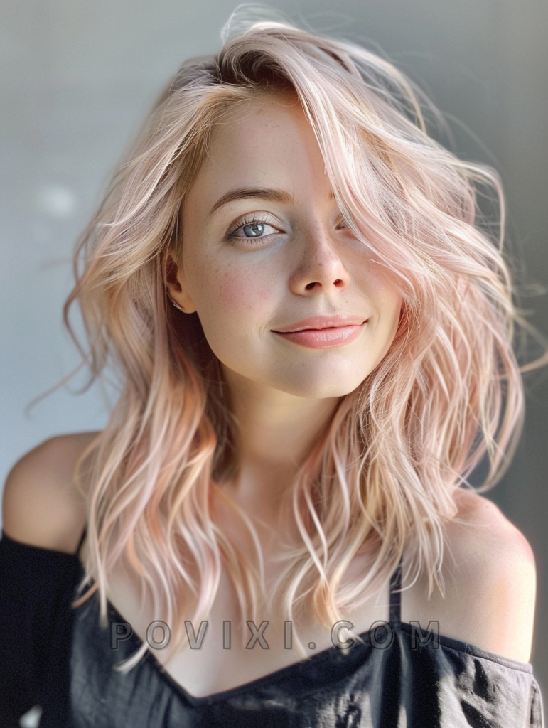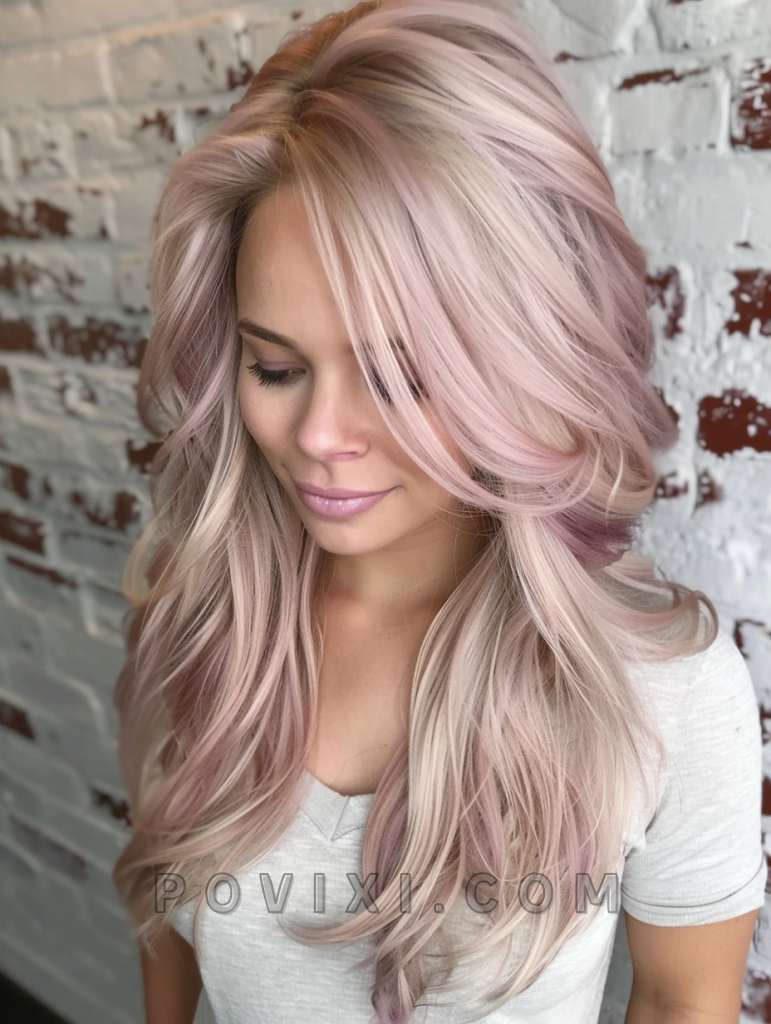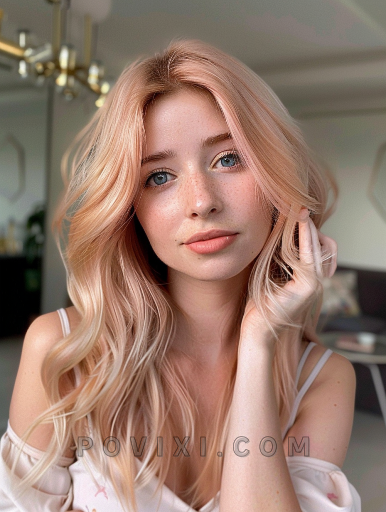 The timeless appeal of a classic rose gold tint is particularly striking on blondes. This shade combines golden blonde with soft pink hues, creating a warm and inviting color that’s perfect for any season. It’s especially suited for light complexions and those with green or blue eyes. Ideal for both casual outings and formal events, this versatile style enhances the natural beauty of blond hair without overpowering it.