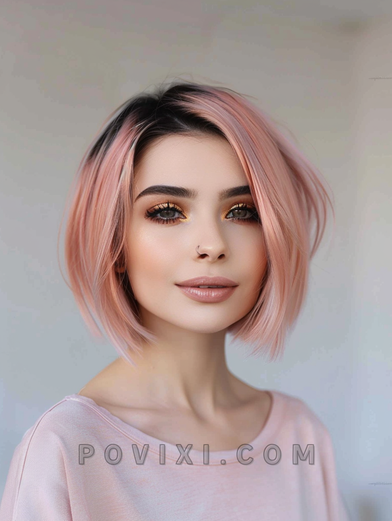 For a trendy and low-maintenance option, consider the rose gold root fade. This style features dark roots that naturally fade into a luminous rose gold hue, creating a seamless transition. It’s ideal for those who want to extend the time between color treatments and works beautifully on medium to dark hair bases.