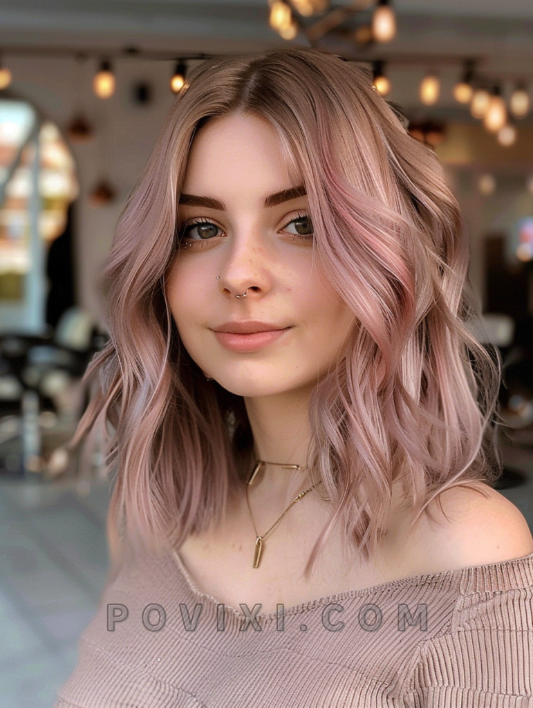 Smoky rose gold incorporates gray or ashy undertones to create a more subdued, smoky appearance. This contemporary take on the rose gold trend is particularly suitable for those with cooler skin tones and works well on all hair lengths.