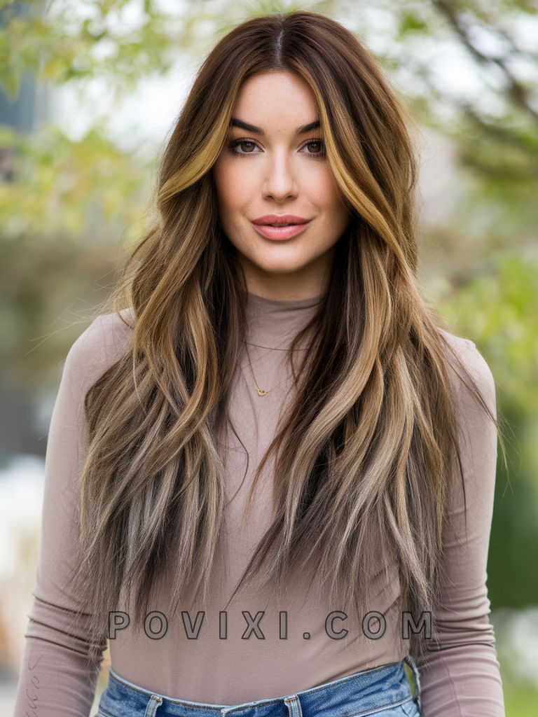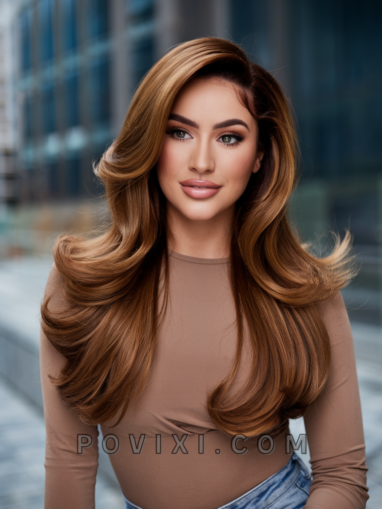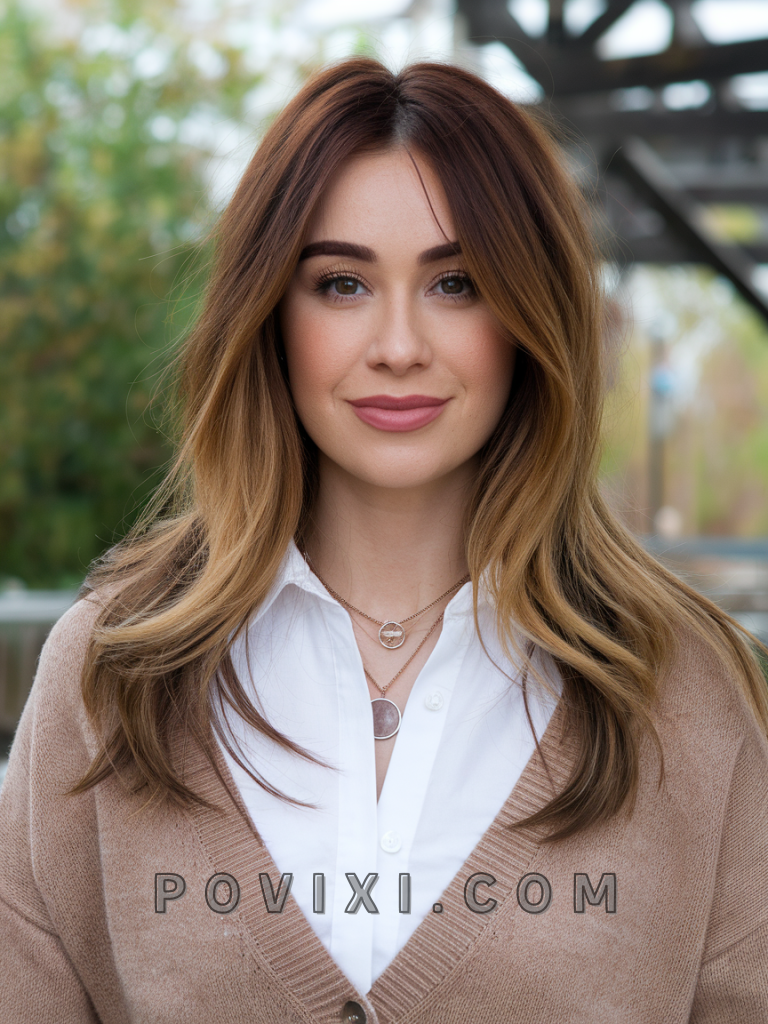 This hairstyle combines the beauty of warm brown balayage with carefully placed highlights to create a natural, sun-kissed glow. Ideal for casual outings or formal events, the soft gradients of this style add dimension and movement to your hair. It’s particularly flattering for oval and heart-shaped faces, while the golden undertones enhance blue and hazel eye colors. The balayage technique ensures a low-maintenance yet polished look that grows out gracefully.