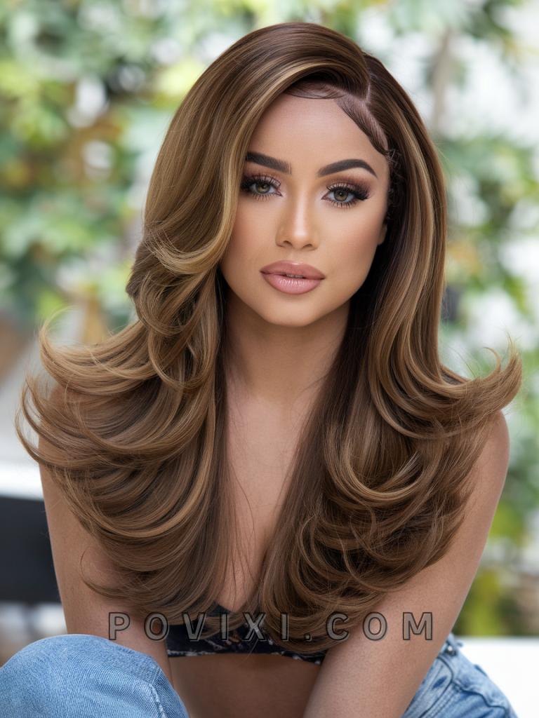 Soft, voluminous curls paired with dimensional highlights create a look that’s both romantic and fun. This style is a versatile choice for special events or a day out, bringing out the best in oval and heart-shaped faces.