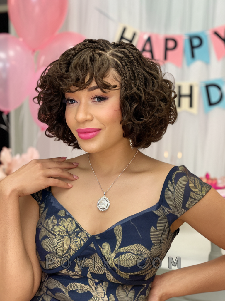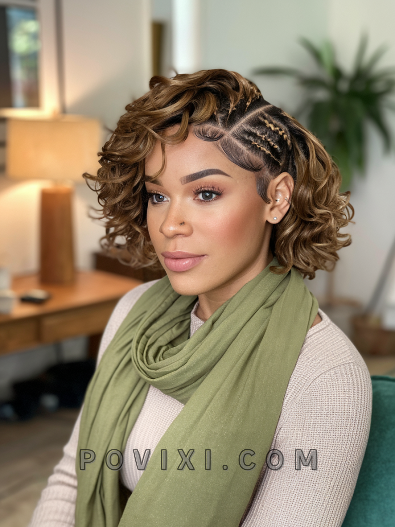 Adding braids to a curly bob creates a unique fusion of textures and styles. This look is ideal for black women wig options, as it combines the sleekness of braids with the volume of curls. It’s an eye-catching choice for parties or cultural events, making a bold statement.