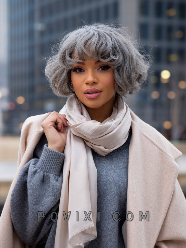 The gray curly bob is a stunning statement, proving that silver strands can be stylish and youthful. This look is ideal for black women embracing their natural grays or anyone looking for a bold color transformation. The soft curls add texture and dimension, making it perfect for formal dinners or artistic events.