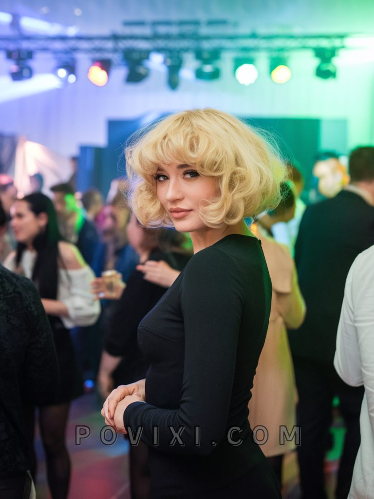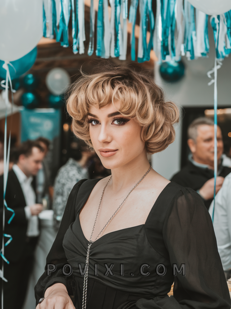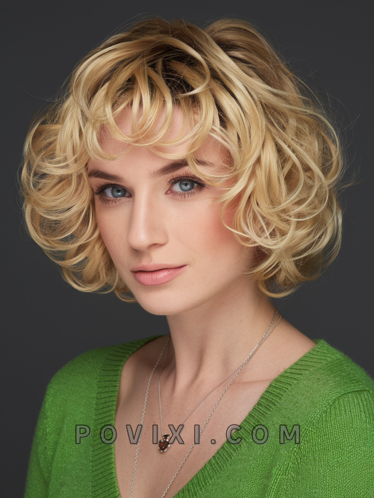 A blond curly bob combines brightness and texture, offering a youthful, lively appearance. Perfect for summer weddings or casual outings, this hairstyle suits most face shapes, especially oval and heart-shaped. The blond hue adds warmth, while the curls add movement.